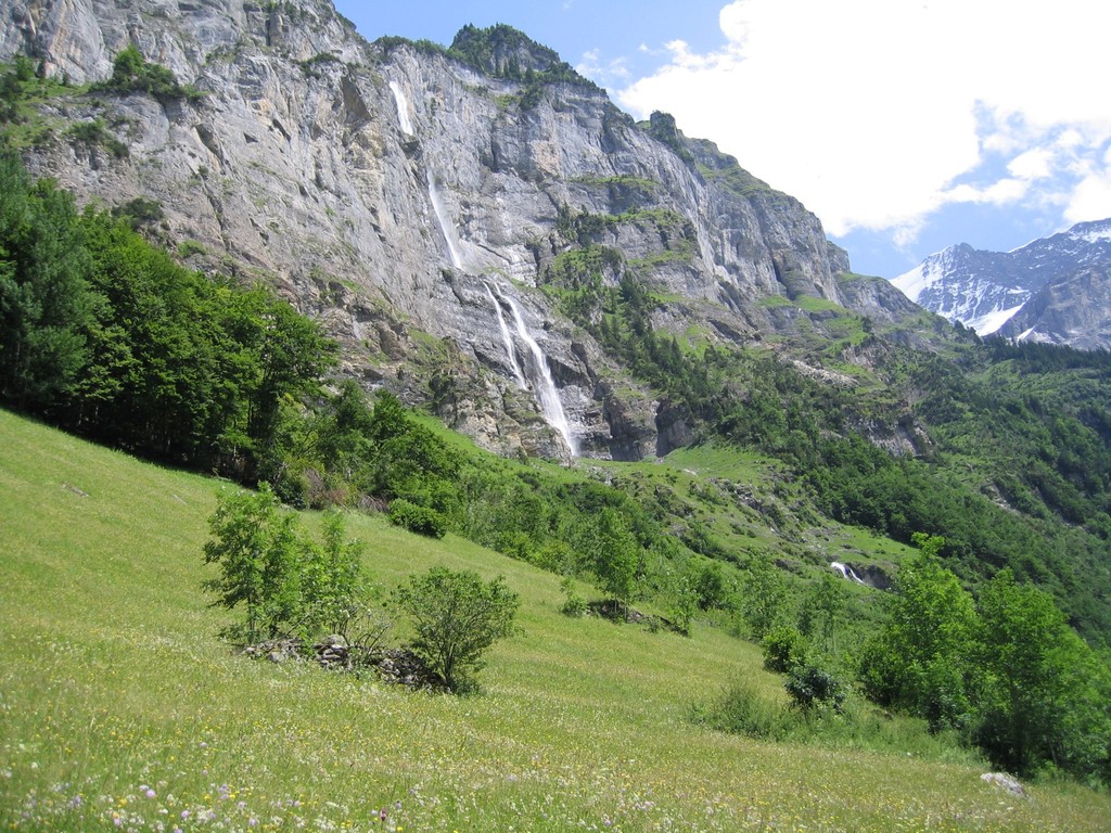 Die rund 6 ha grosse Fläche an den Flanken des Lauterbrunnentals präsentiert sich zur Blütezeit als ein eigentlicher Blumenteppich. Erst seit einem Jahr kann wenigstens der Abtransport des Heus ins Tal mit dem Transporter erfolgen, vorher musste dies im Winter mit Schlitten erfolgen. Bewirtschafter: Mathias Feuz, Stechelberg