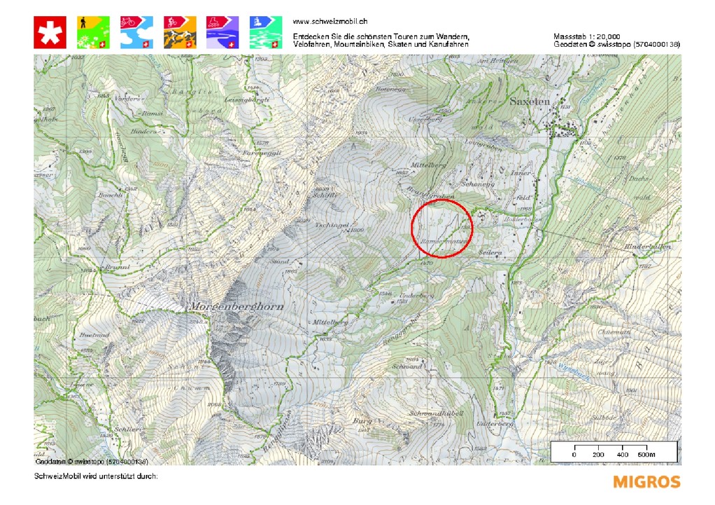 Auf 1'350 bis etwa 1'700 m liegen rund 6 ha ökologische Mähwiesen. Weitere 20 ha gehören zum Sömmerungsgebiet der Alp Fahl, wo 50 Rinder um den malerischen Stall weiden. Insgesamt sind es etwa 3 ha Feuchtgebiet und 0.3 ha Trockenstandort, was die grosse Artenvielfalt mit vielen Schmetterlingen, Orchideen und Wollgräsern zur Folge hat. Bewirtschafter: Alpschaft Fahl, Daniel Seematter und weitere Landwirte, Saxeten