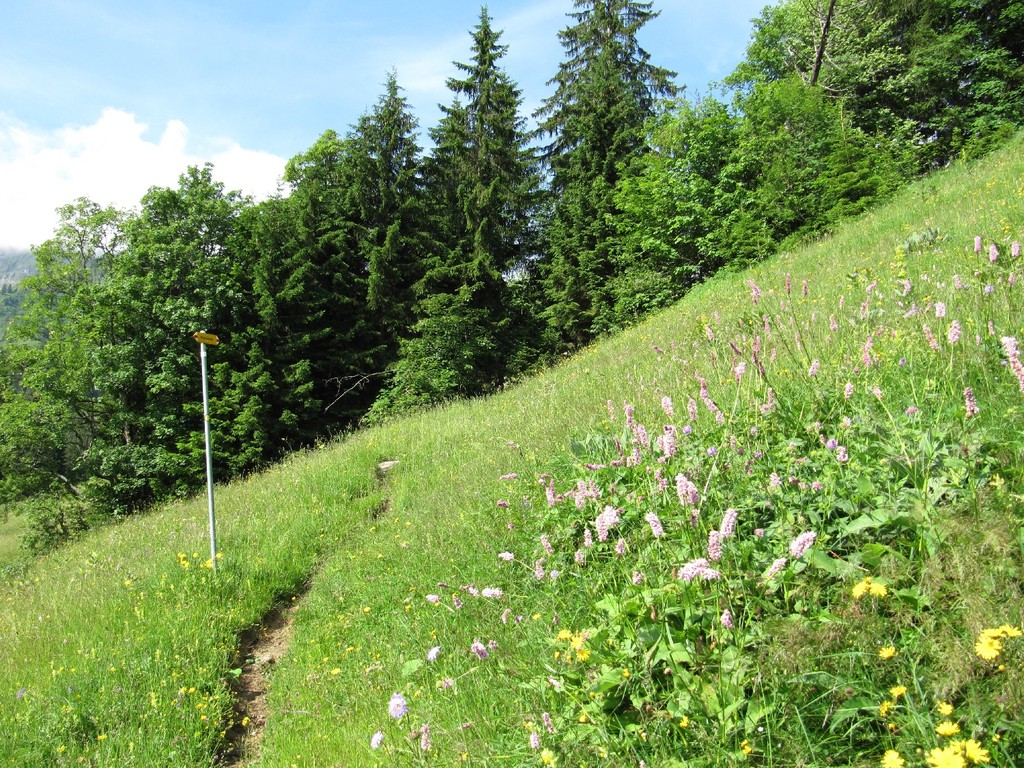 Wandern/Tourismus: Von Saxeten führt der einsame Wanderweg mitten durch das Blumenmeer auf das Morgenberghorn oder über den Rengglipass nach Aeschiried. Von hier reicht der Blick von der Schwalmere und Sulegg bis zur Rotenfluh und dem Brienzergrat.