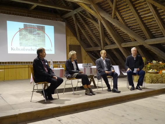 Wie sieht die Zukunft unserer wertvollen Kulturlandschaft aus? Dieser Frage war zum Abschluss der Veranstaltung eine Podiumsdiskussion gewidmet. Daran nahmen Dominik Siegrist, Präsident der internationalen Alpenschutzkommission CIPRA, Regi Wittwer, Tourismusexpertin, und Erich von Siebenthal, Landwirt und Nationalrat, teil. Quintessenz der Debatte: Die Landwirtschaft zeigt gegenläufige Entwicklungstendenzen; einer fortschreitenden Intensivierung und wachsendem Druck auf landwirtschaftliche Nutzflächen steht eine zunehmende Extensivierung besonders im Berggebiet gegenüber. Die Folgen davon sind Artenverlust, ökologische Verarmung und Verbuschung bzw. Verwaldung bis zum Verlust von landwirtschaftlichen Nutzflächen. Wertschätzung gegenüber artenreichen Kulturlandschaften und substanzielle Unterstützungsmassnahmen zu deren Erhaltung können dieser Entwicklung entgegenwirken.