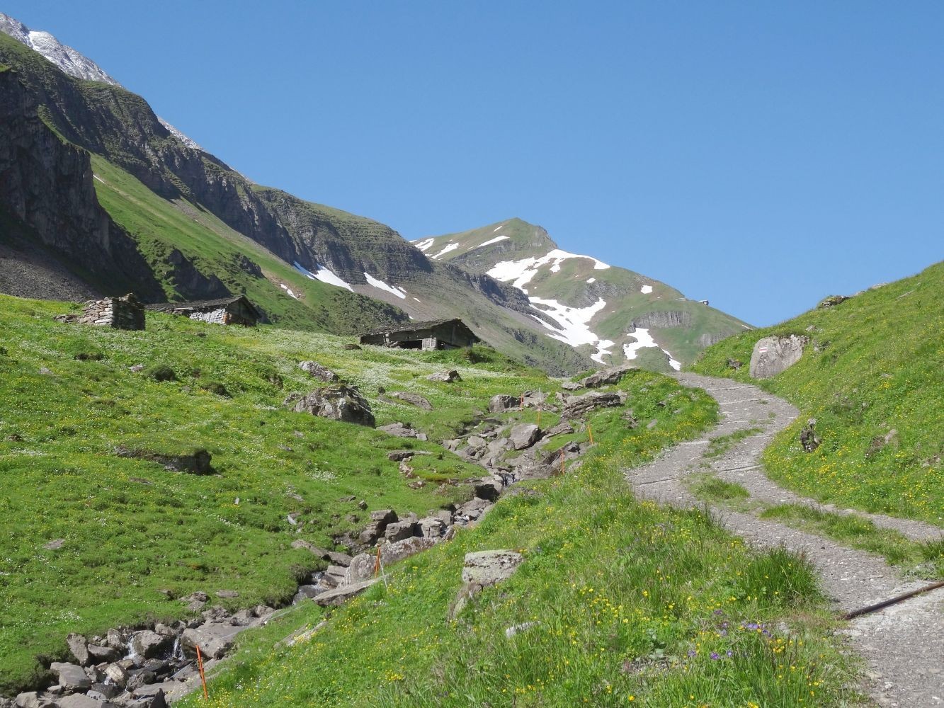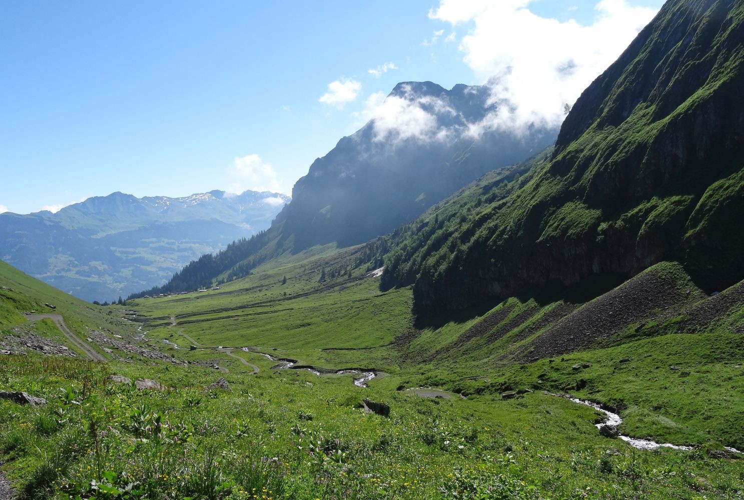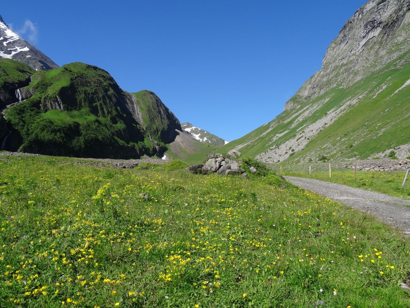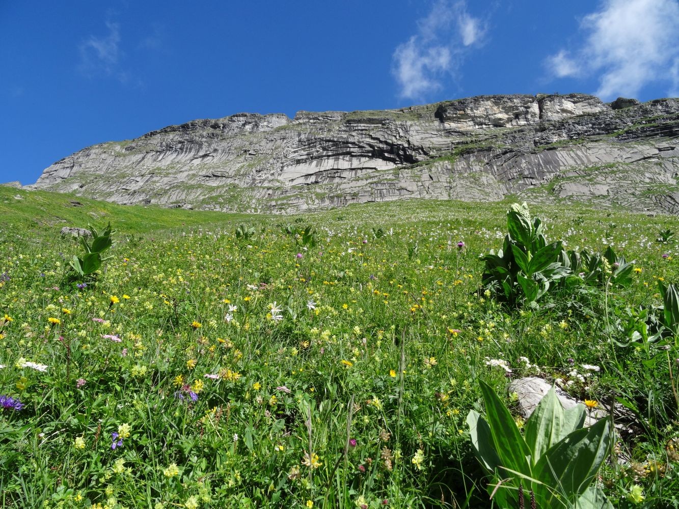 Alp Oltscheren: Blumenpracht und Einsamkeit unter steilen Felswänden