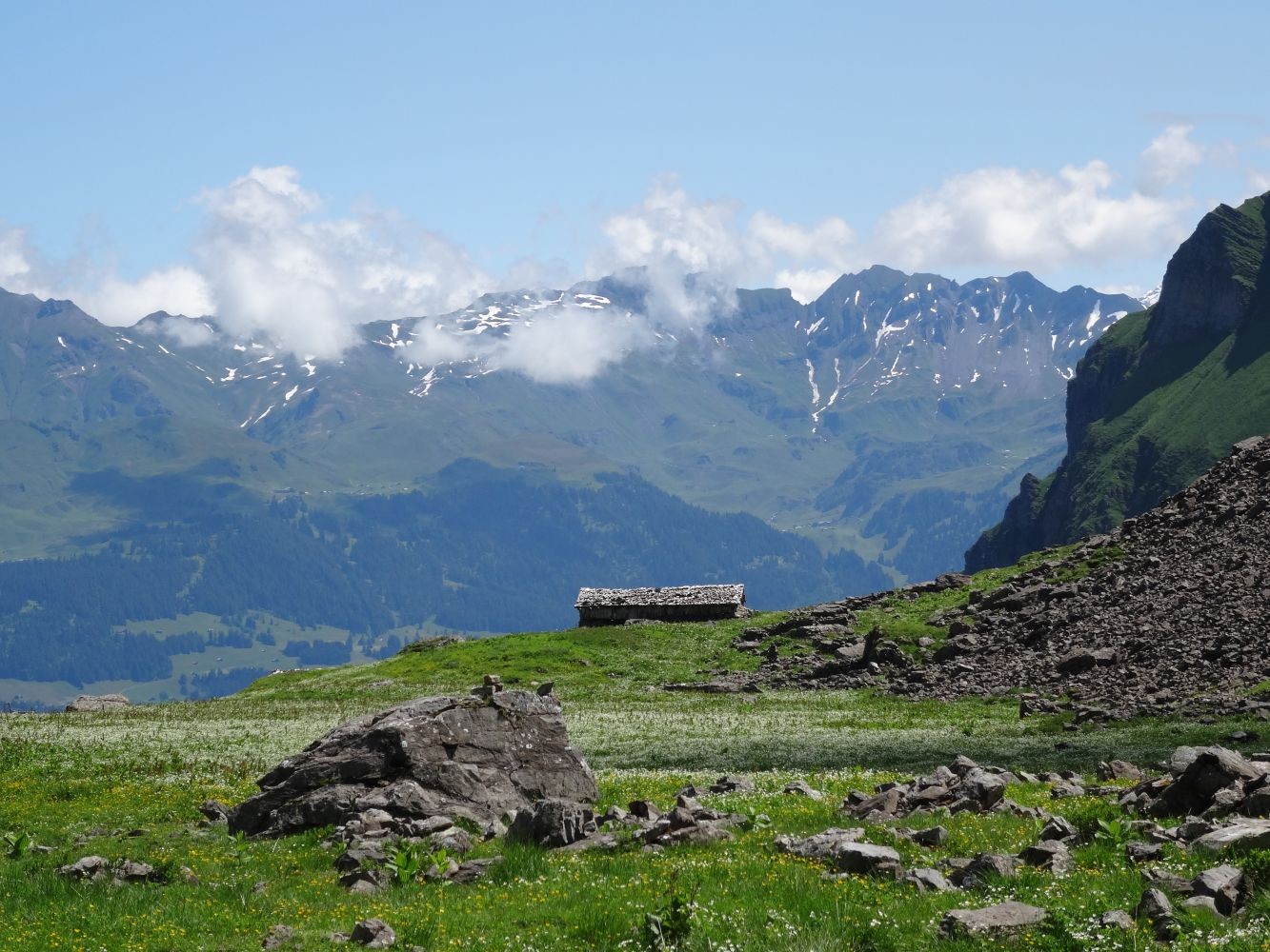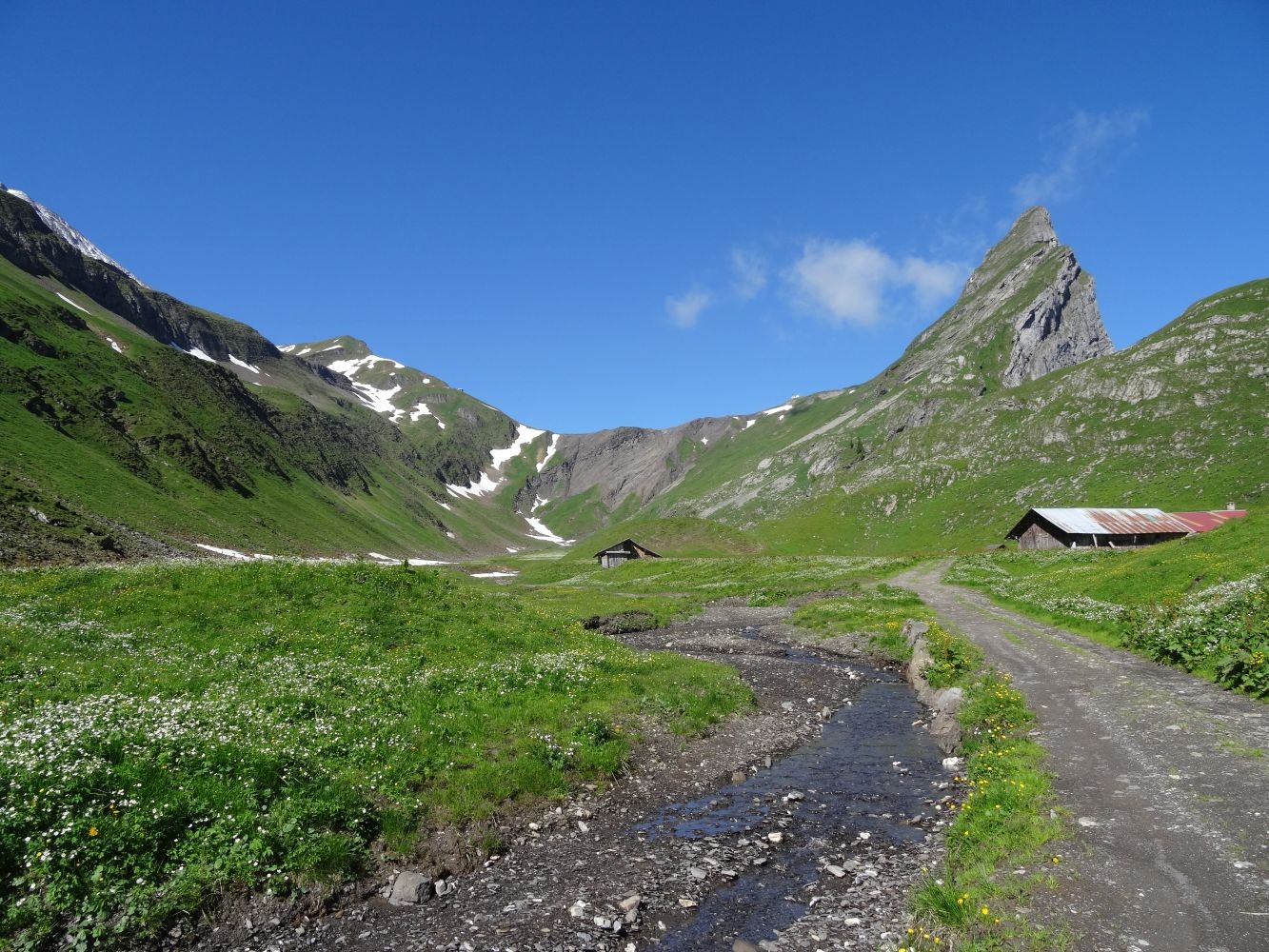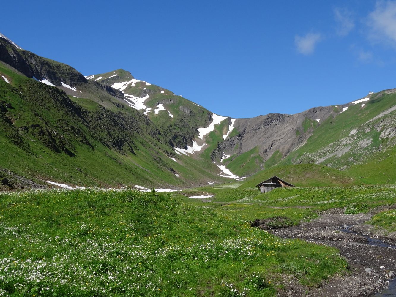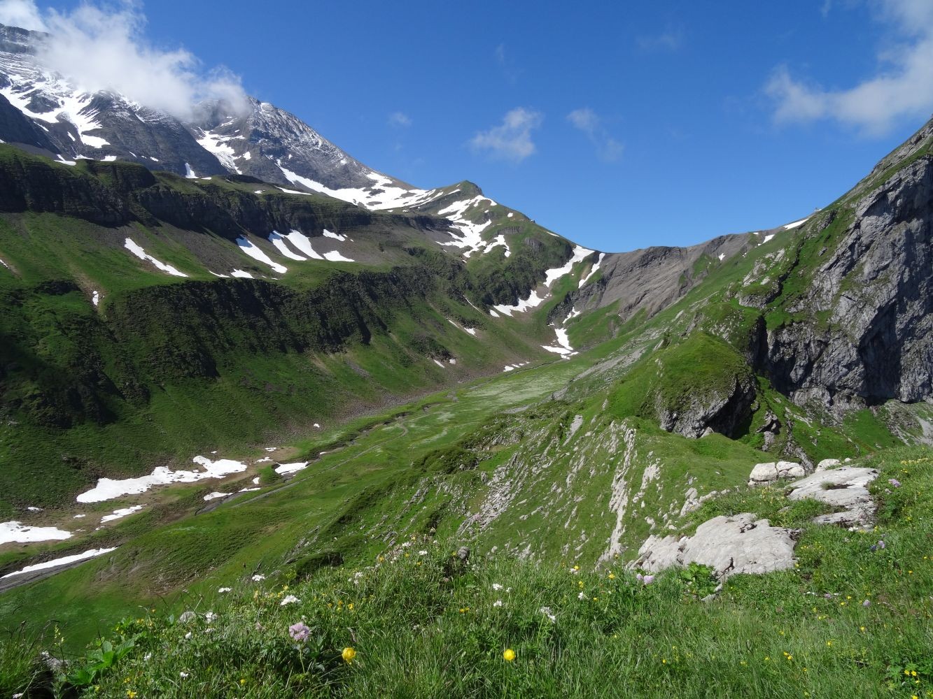 Alp Oltscheren: Blumenpracht und Einsamkeit unter steilen Felswänden