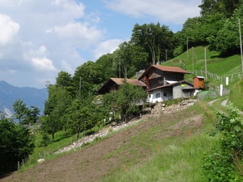 Auf der stufigen Fläche Schwendlen gibt es auf relativ kleinem Raum sehr viel Unterschiedliches zu sehen: vom Bienenhaus über den Obstgarten, Findlinge und "Hüttli" schweift des Wanderers Blick bis hinüber auf die andere Talseite mit dem rauschenden Oltscherenfall.