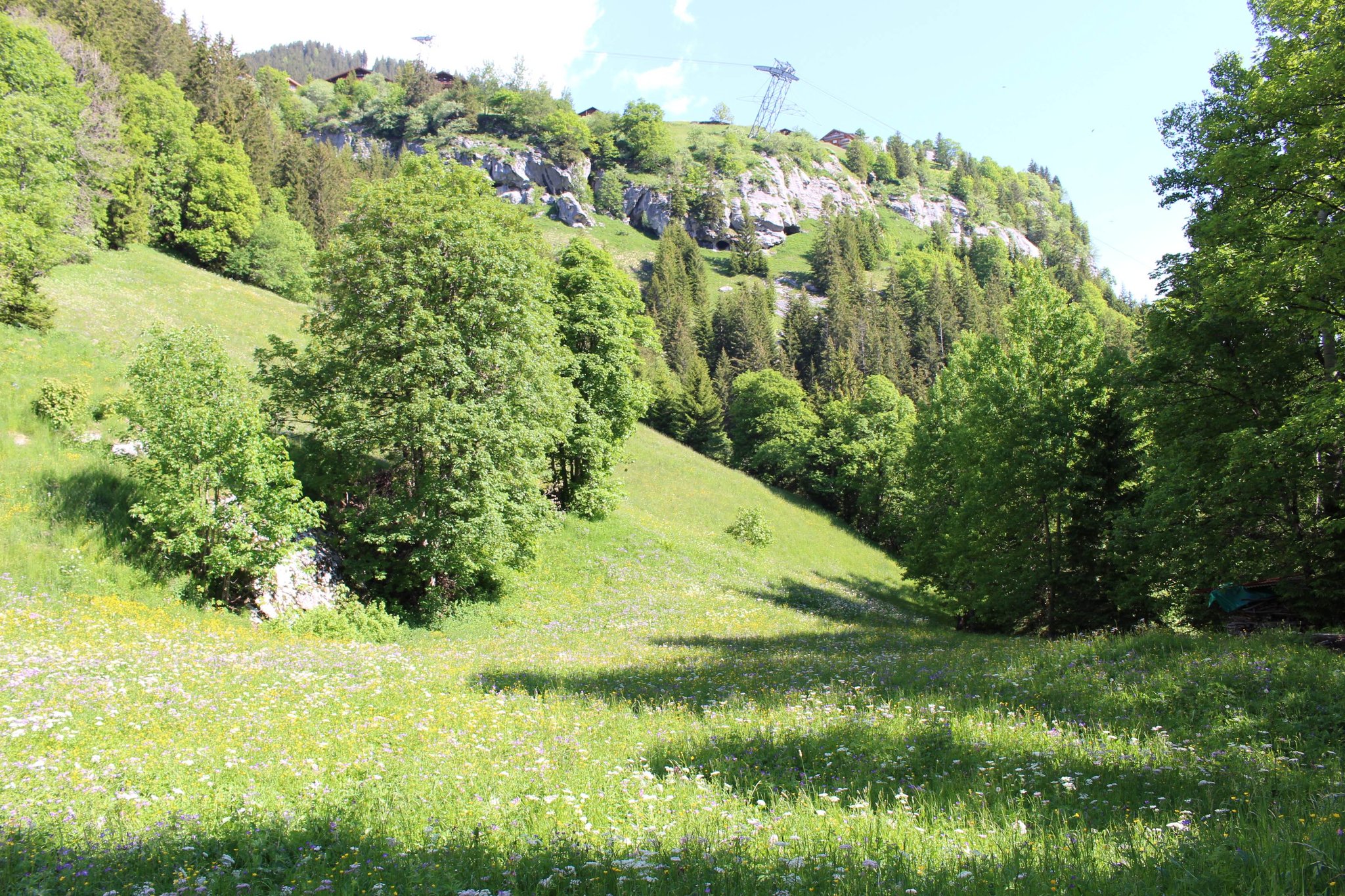 Auf 1450 m liegen am Südosthang unweit der Station Mürren rund 1.65 ha Mähwiese südlich des Mirrenbachs, direkt oberhalb der Felswand (Mürrenfluh mit Klettersteig). Schwendi ist die am tiefsten gelegene Fläche des Betriebes und die einzige, die zweimal gemäht werden kann, weshalb sie nicht als Ökofläche angemeldet ist. Teilweise ist sie sehr steil. Ein kleines Bächlein und ein wunderschöner alter Ahorn strukturieren die Fläche auf attraktive Weise. Am Waldrand gedeihen Türkenbundlilien, im hinteren Teil der Fläche auch Orchideen wie das Knabenkraut. Die Wiese ist blumenreich und zieht auch viele Schmetterlinge an. Oft sind Gämsen zu sehen.