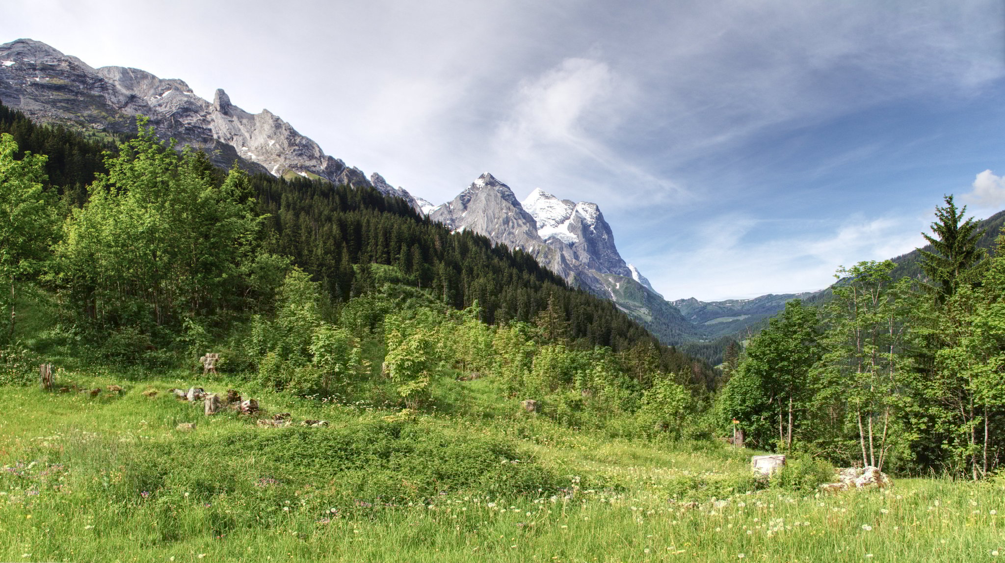 Wandern/Tourismus: Der Wanderweg ins Rychenbachtal führt durchs Furi und bietet eine grossartige Rundsicht vom Wellhorn, Wetterhorn und Eiger über die Grosse Scheidegg, den Grindelgrat, den Rothorngrat und den Brünig, über den Hasliberg zu Wenden und Titlis ins Gadmertal und bis zum Bänzlouistock.