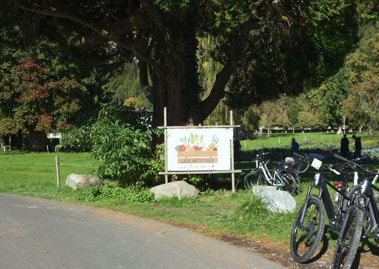 Nach der Präsentation verschob sich die Gesellschaft zum Lieblingsgmües, das nördlich der Höhematte liegt und so vom Touristenstrom mehrheitlich unbehelligt bleibt. Dennoch weisen Schilder darauf hin, dass nur die Vereinsmitglieder Zutritt zum Gemüsefeld haben.