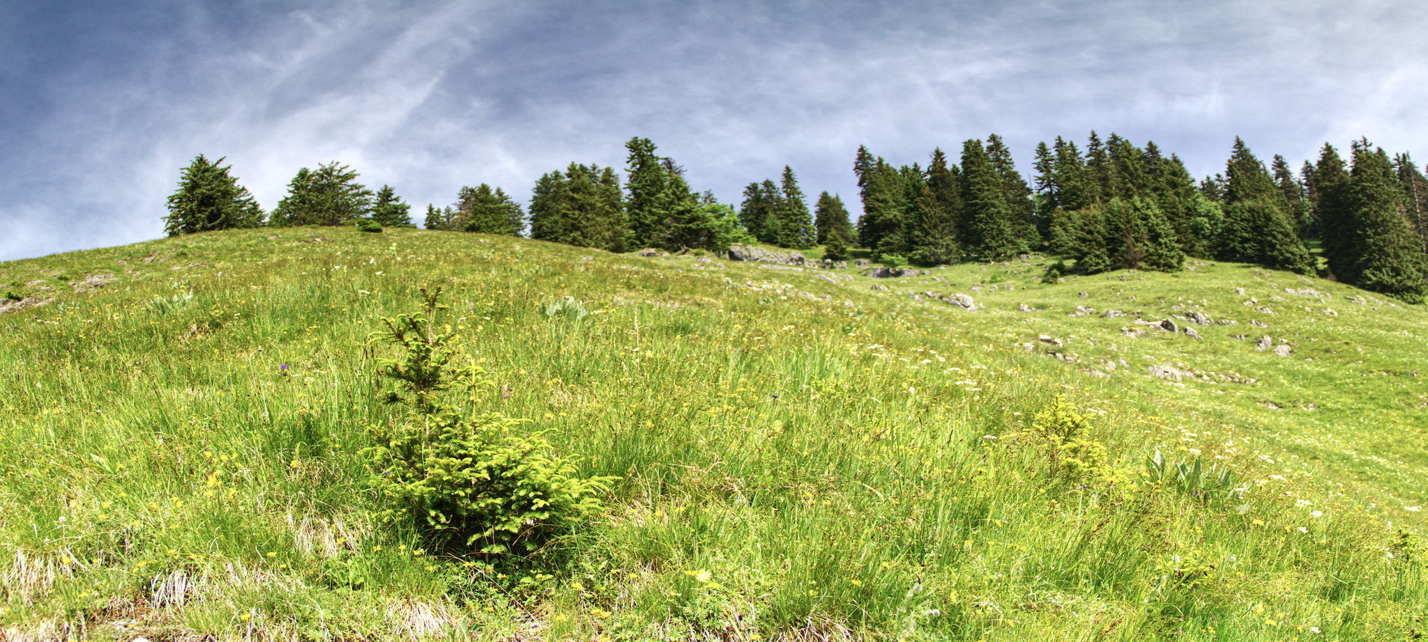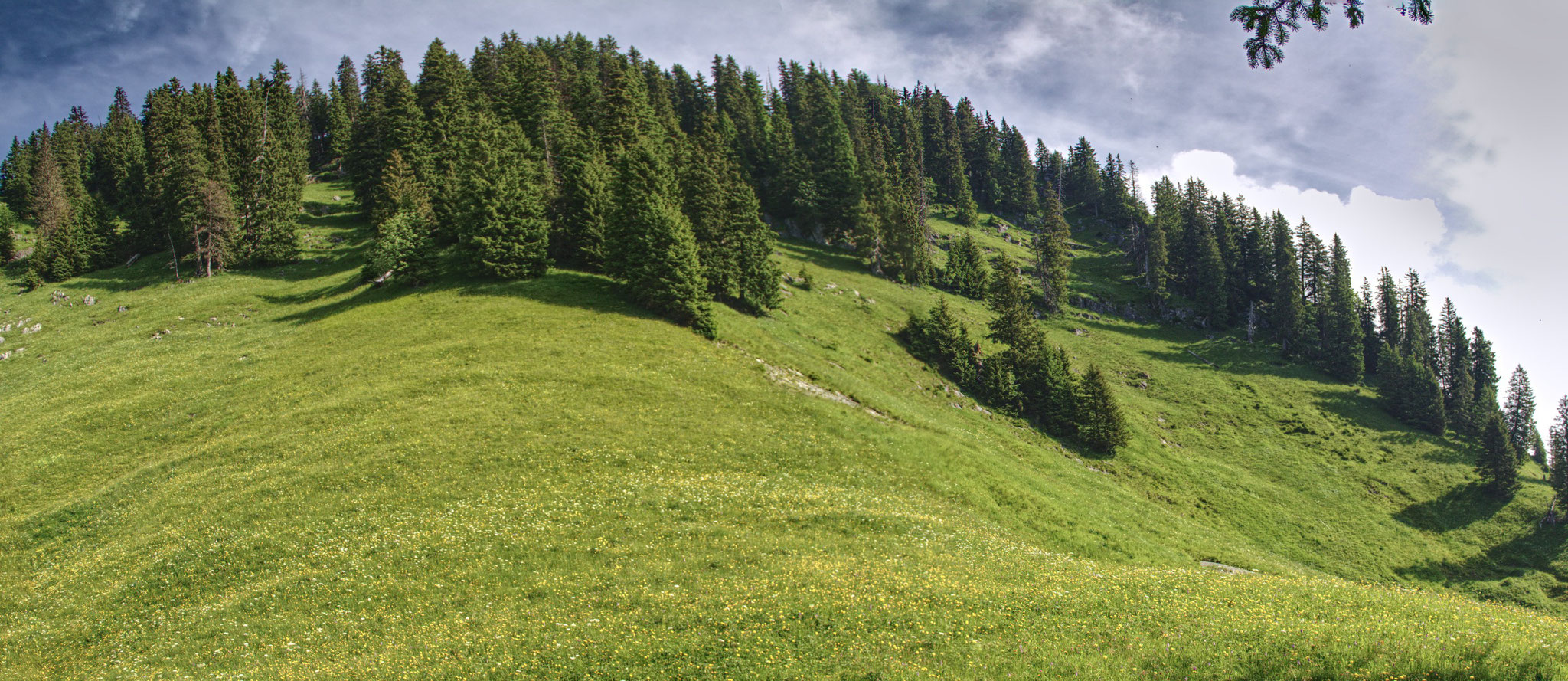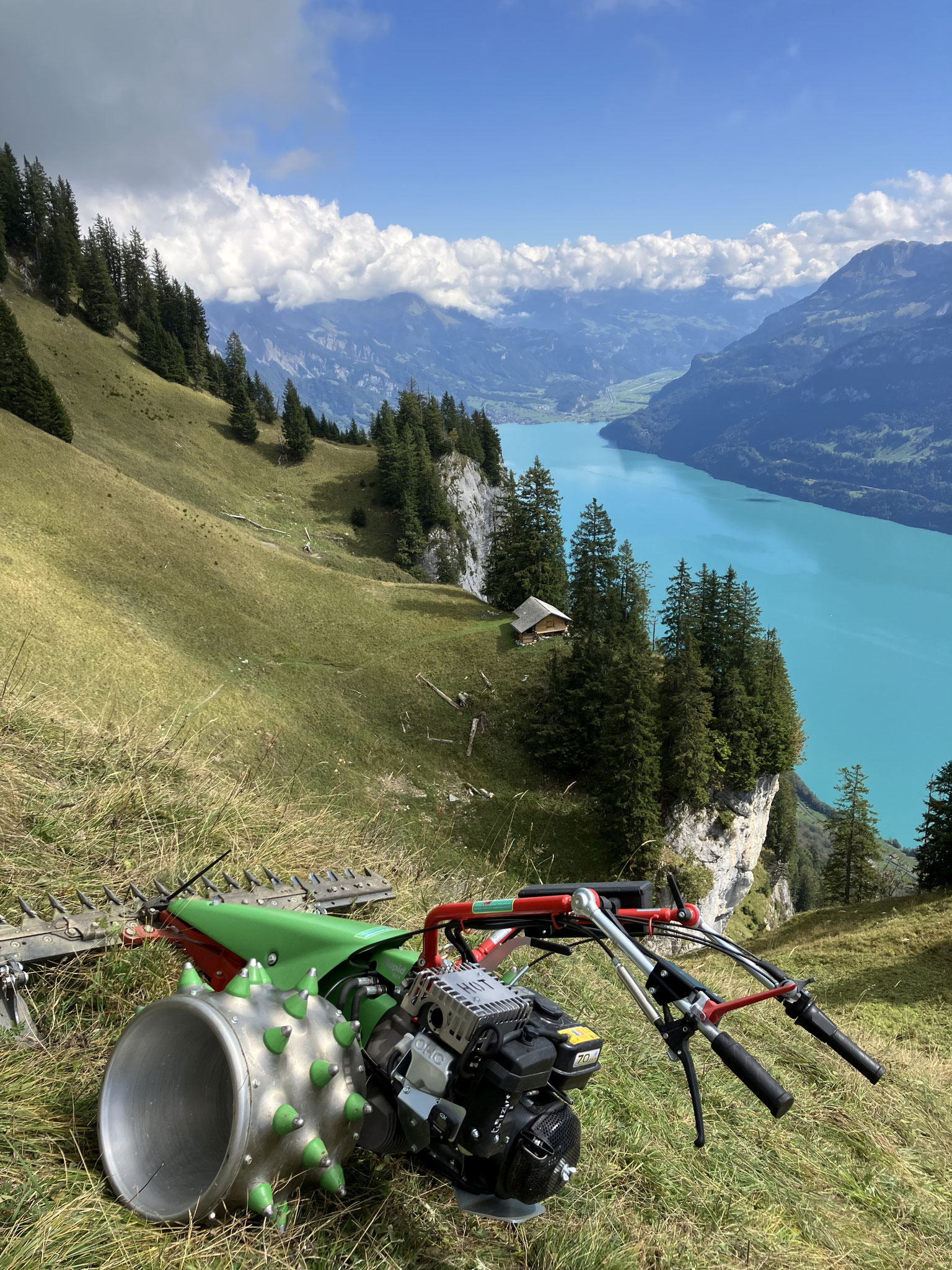 Das Gebiet Solboden-Solwengen liegt auf 1700 m Höhe hoch über dem Brienzersee direkt unterhalb des Hardergrats im nordöstlichsten Zipfel der Gemeinde Ringgenberg, im Wildschutz- und Jagdbanngebiet Augstmatthorn. Die Artenvielfalt der 0.7 ha grossen Mähwiese ist ausgesprochen hoch – sie gehört zum kantonalen Inventar der Trockenwiesen- und weiden. Deshalb wurde die vor längerer Zeit aufgegebene Bewirtschaftung auf Initiative des zuständigen Naturschutzaufsehers vor vier Jahren wieder aufgenommen. So fällt die Fläche nicht dem Wald anheim und die Artenvielfalt bleibt erhalten. Weil die Fläche so steil und abgelegen ist, muss das Heu per Helikopter abtransportiert werden – ein Kompromiss zugunsten der Biodiversität und bestes Futter für die Yaks des Bewirtschafters. Das Wort «Sol» bedeutet «sumpfige Stelle» und tatsächlich gibt es solche, was das Artenspektrum noch einmal verbreitert. Neben Orchideen wie Knabenkraut, Weisse Höswurz oder Brandorchis flattern auch ungemein viele Schmetterlinge über die Fläche. Ein kleines Hüttli bietet den Bewirtschaftenden Unterschlupf.