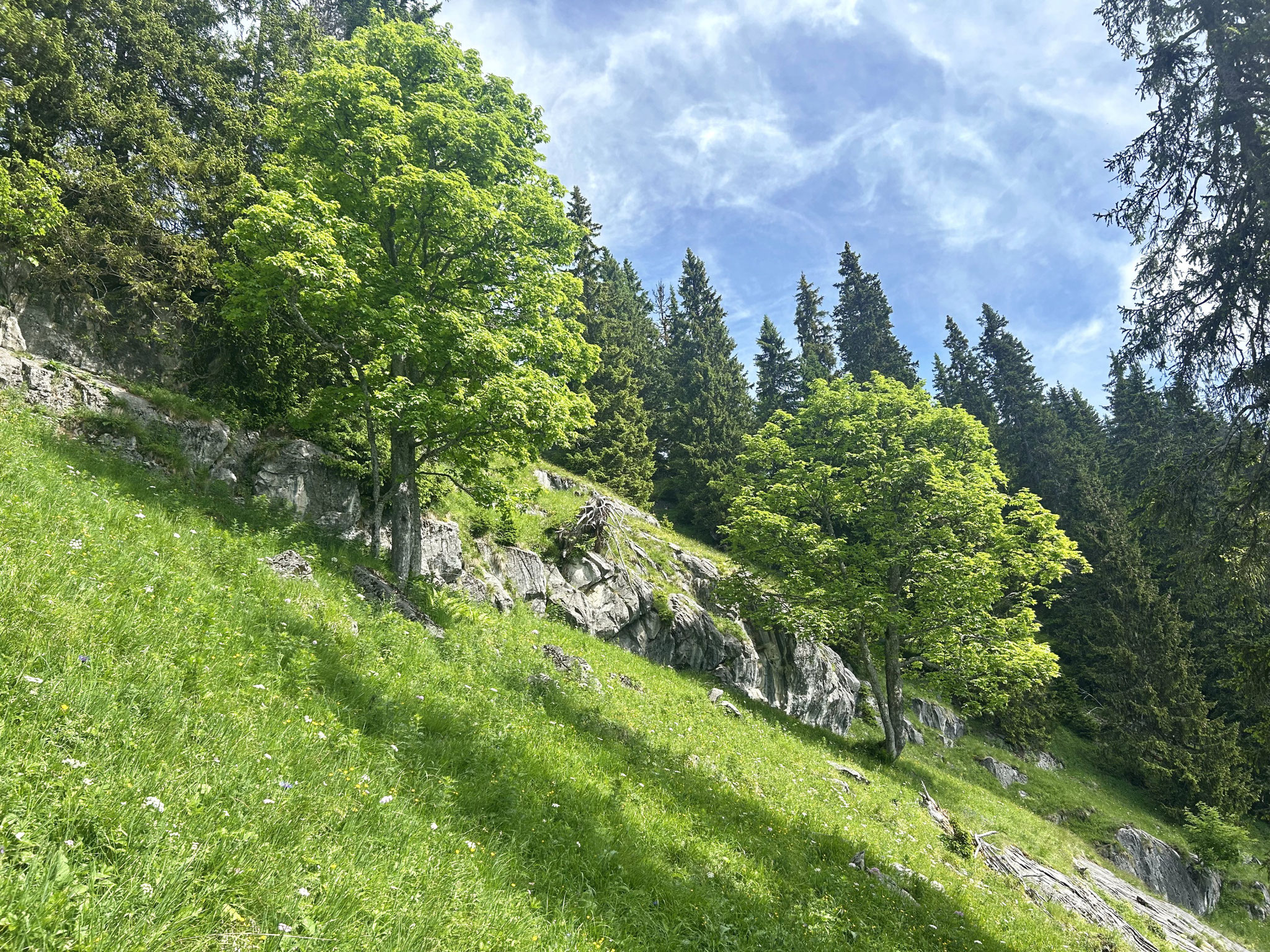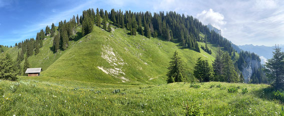 Vom vielbegangenen Wanderweg zum Augstmatthorn hat man aber Einblick in die Fläche und kann auch die imposante Aussicht vom Hasli über Eiger, Mönch & Jungfrau bis zum Thunersee geniessen.